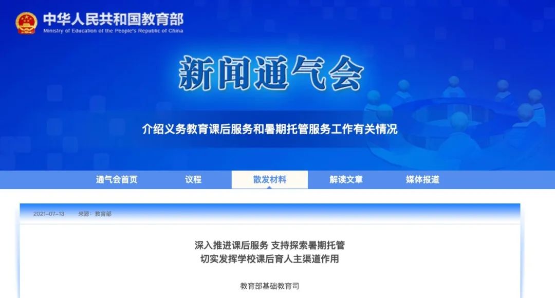 7月13日下午,教育部举行新闻通气会,介绍义务教育课后服务和暑期托管服务工作有关情况。教育部基础司司长的发言明确:今秋推行“一校一案”课后服务,推行课后服务“5+2”模式。