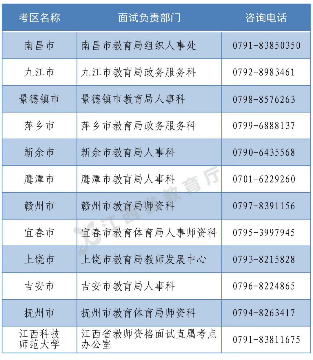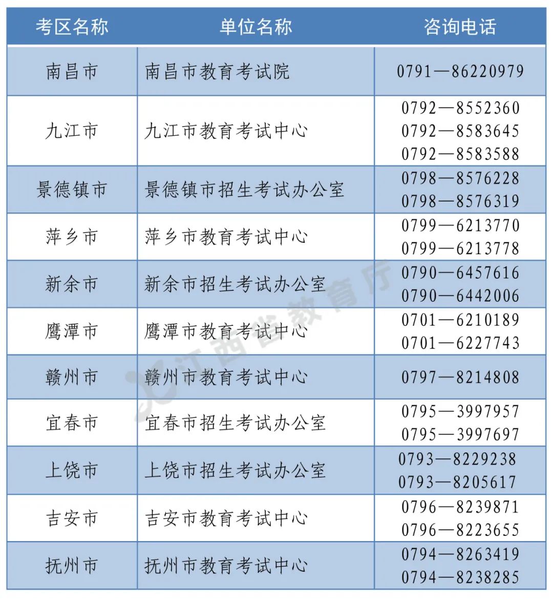 江西省中小学教师资格面试考区咨询电话