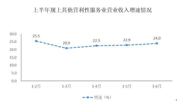 (一)其他营利性及非营利性稳中求进。1-6月,规模以上其他营利性服务业企业实现营业收入13.56亿元,同比增长24.0%,增速较一季度提高3.1个百分点,位列全省第六,较一季度前移1位;非营利性行业营利性企业实现营业收入12.22亿元,同比增长14.5%,增速较一季度提高1.5个百分点,位列全省第四,较一季度前移3位。