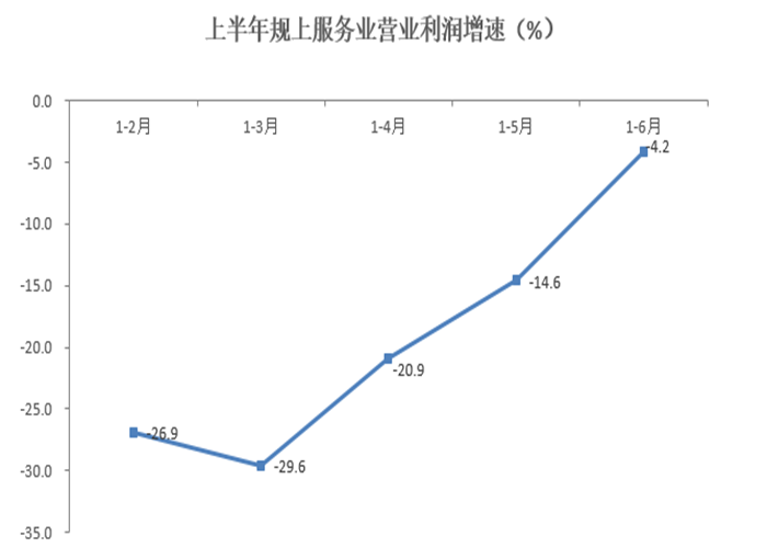 (一)行业恢复势头向好。分门类看,1-6月10个门类营业收入增速7正3负,行业增长面占七成,比一季度提高了三成。与一季度比,除信息传输、软件和信息技术服务业营业收入以个位数回升,其余9个门类均以二位数回升,其中居民服务、修理和其他服务业营业收入同比增长25.9%,比一季度提高25.7个百分点,同比和环比增速均领先其他行业。