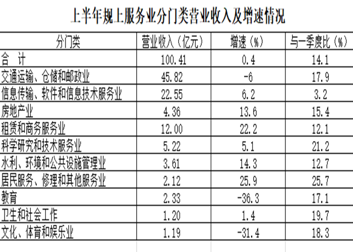 今年上半年,在抓好疫情防控,助力企业复工复产的同时,统筹抓好经济社会发展稳定各项工作,为推动我市经济持续复苏提供坚实保障。1-6月,全市规模以上服务业企业营收突破“百亿”大关,累计实现营业收入100.41亿元,同比增长0.4%,是今年以来首次正增长,意味着下滑的“坎”已过去,开始恢复性增长的爬坡。