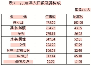 人口总量继续增长。年末全市总人口为475.56万人。全年全市人口出生率为13.68‰,比上年提高0.08个千分点;死亡率为6.01‰,比上年提高0.01个千分点;自然增长率7.67‰,比上年提高0.07个千分点。