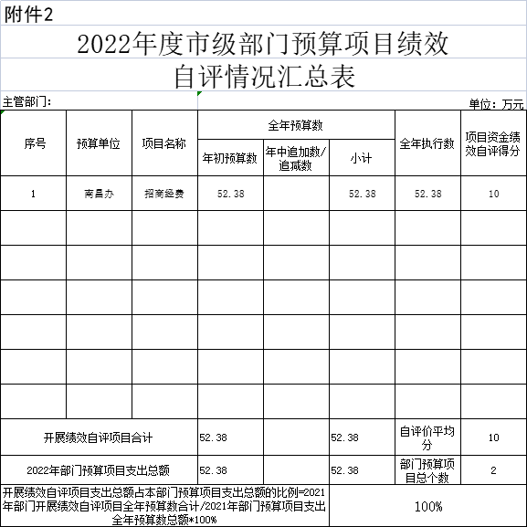 南昌办2022年部门预算项目支出绩效评价汇总表
