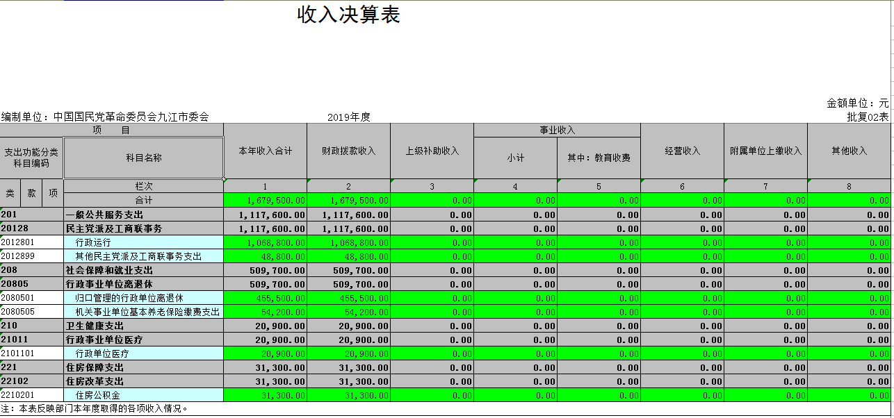 纳入本套部门决算汇编范围的单位共1个,为民革九江市委会。