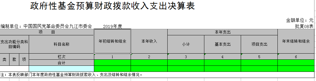 (八)上年结转和结余:填列2019年全部结转和结余的资金数,包括当年结转结余资金和历年滚存结转结余资金。