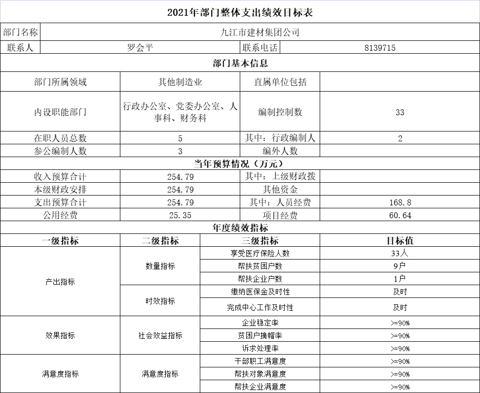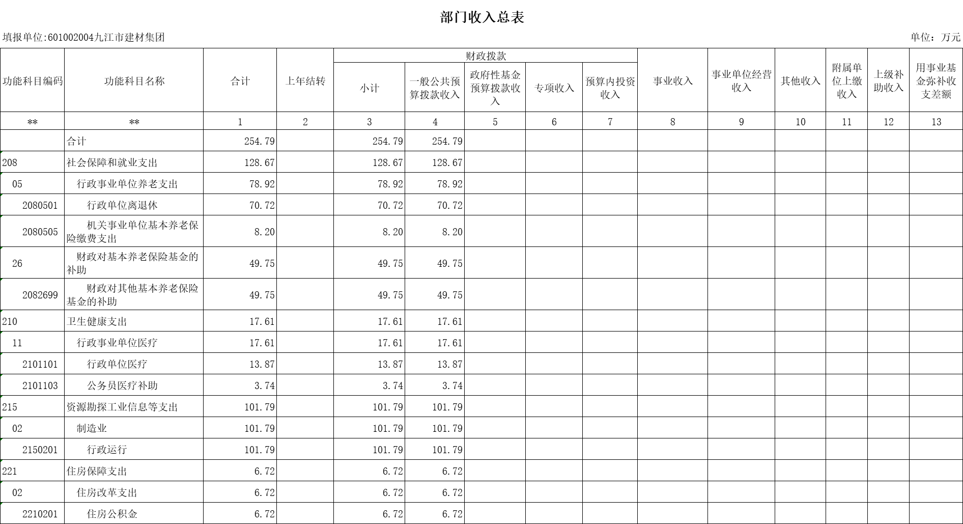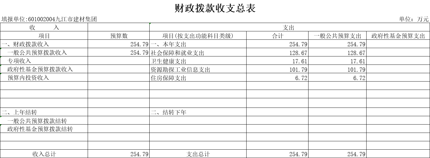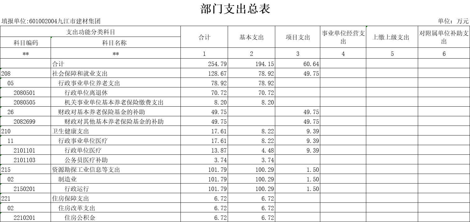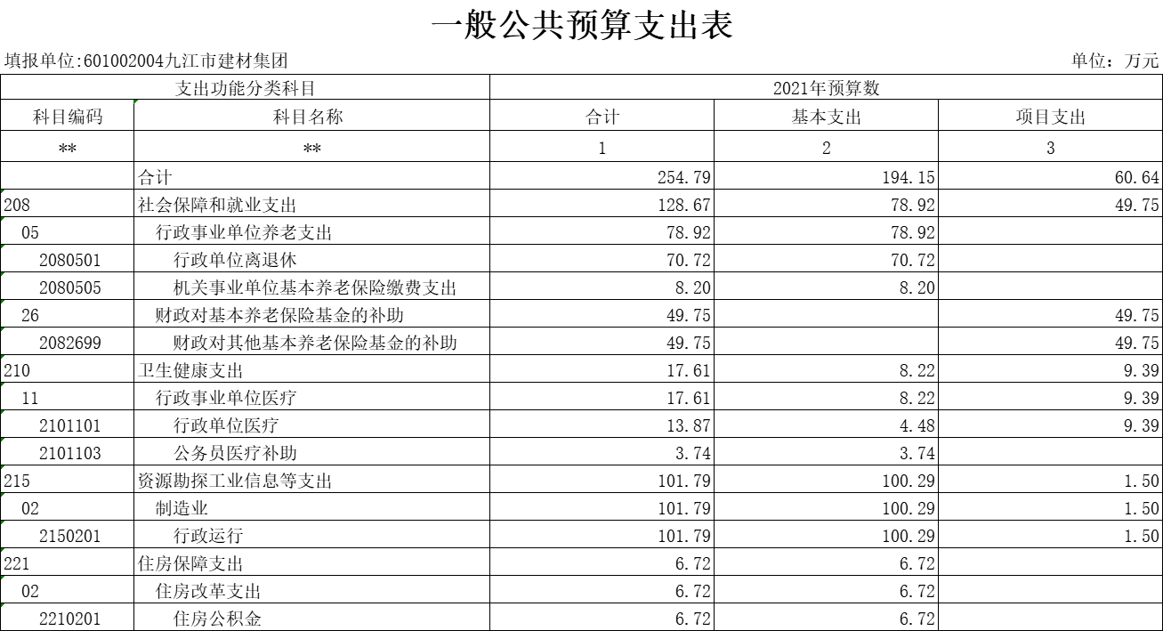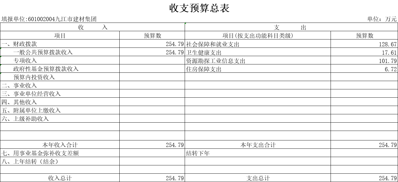 2021年九江市建材集团公司支出预算总额254.79万元。