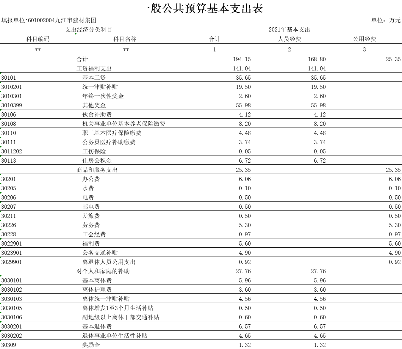 第三部分 九江市建材集团公司2021年部门预算表(详见附表)