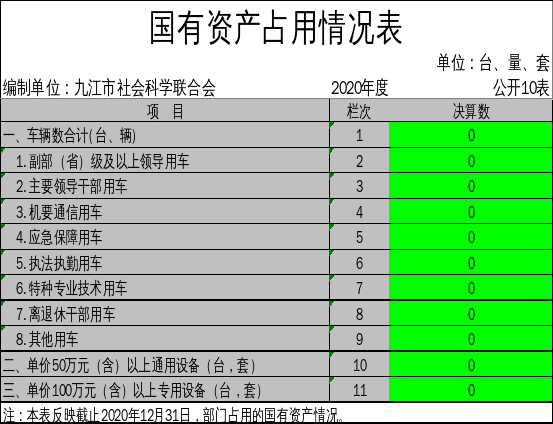 截止2020年12月31日,本部门国有资产占用情况见公开09表《国有资产占用情况表》。
