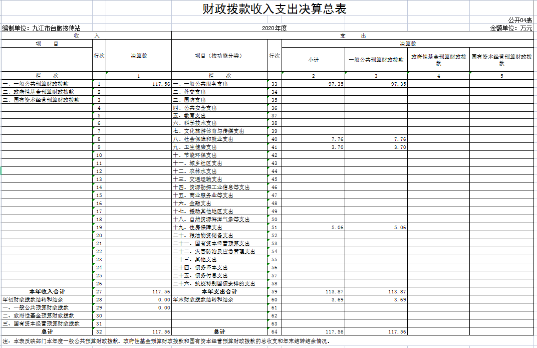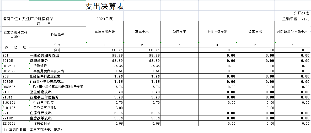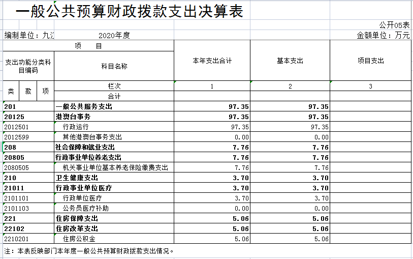 纳入本套决算汇编范围的单位为:九江市台胞接待站。
