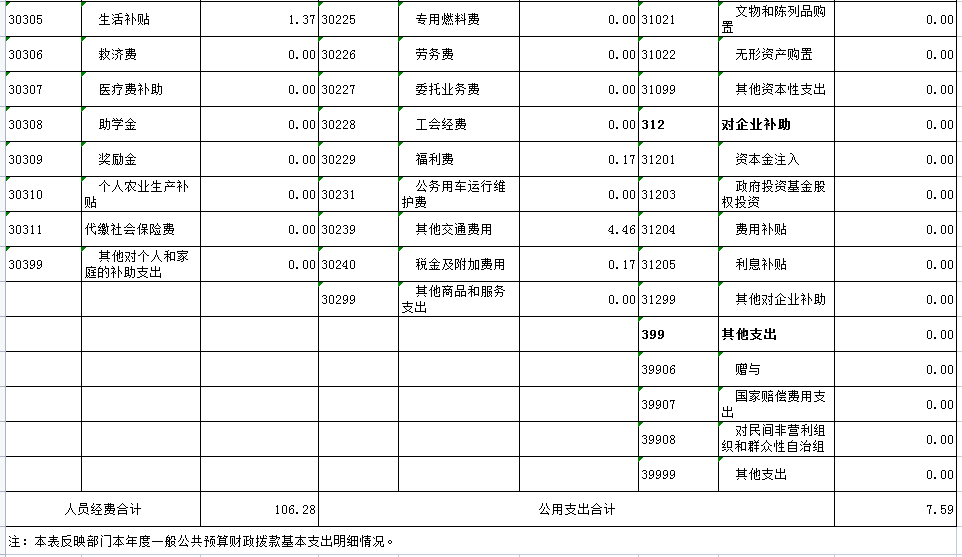 (一)基本支出:包括人员经费、商品和服务支出。其中,人员经费包括工资福利支出、对个人和家庭的补助。