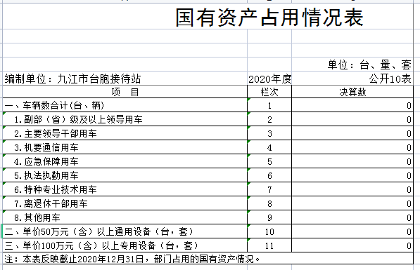 截至2020年12月31日,本单位国有资产占用情况见公开10表《国有资产占用情况表》。本单位无公务用车。