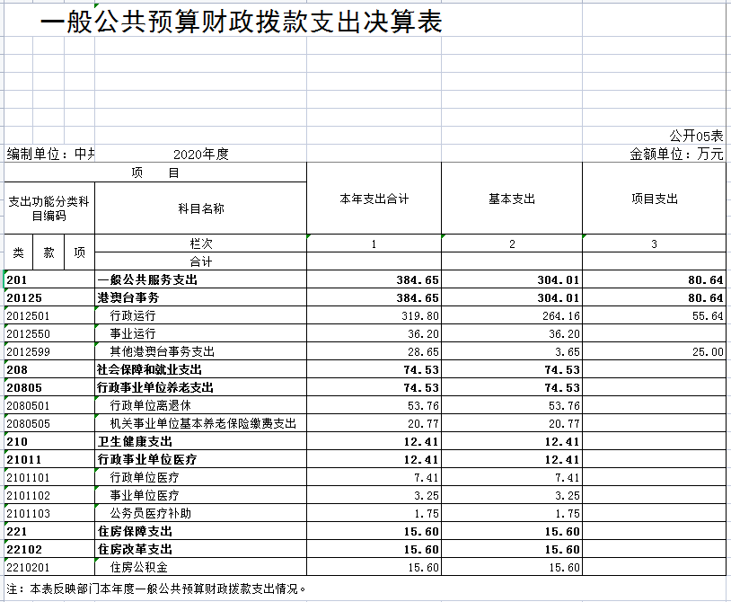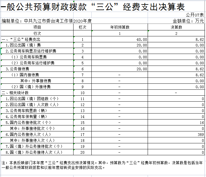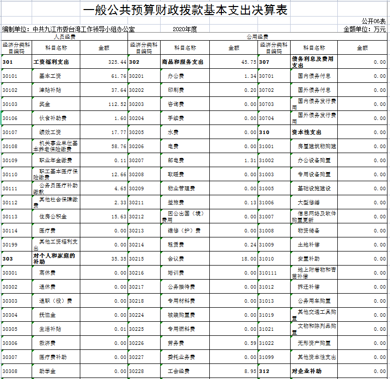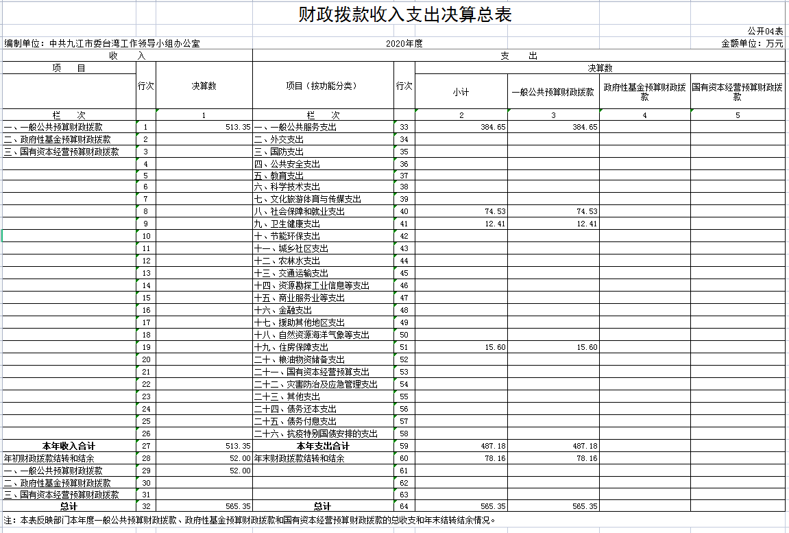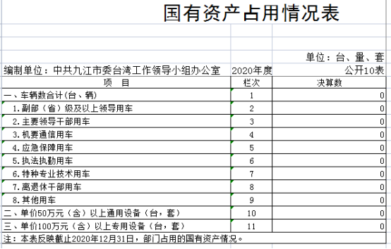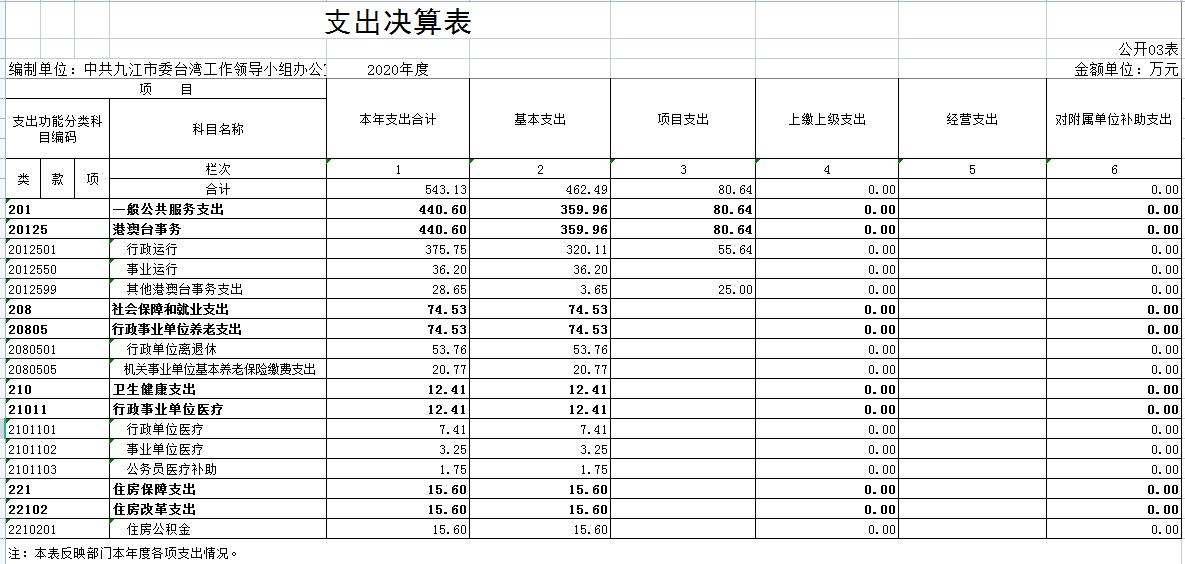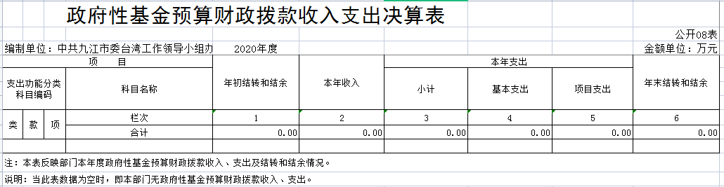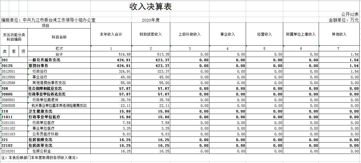 中共九江市委台湾工作领导小组办公室2020年度机关决算