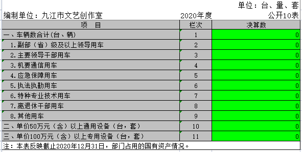 截至2020年12月31日,本单位国有资产占用情况见公开10表《国有资产占用情况表》其中车辆中的其他用车车辆0辆。没有任何国有资产占用情况。