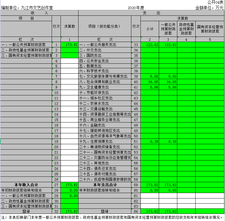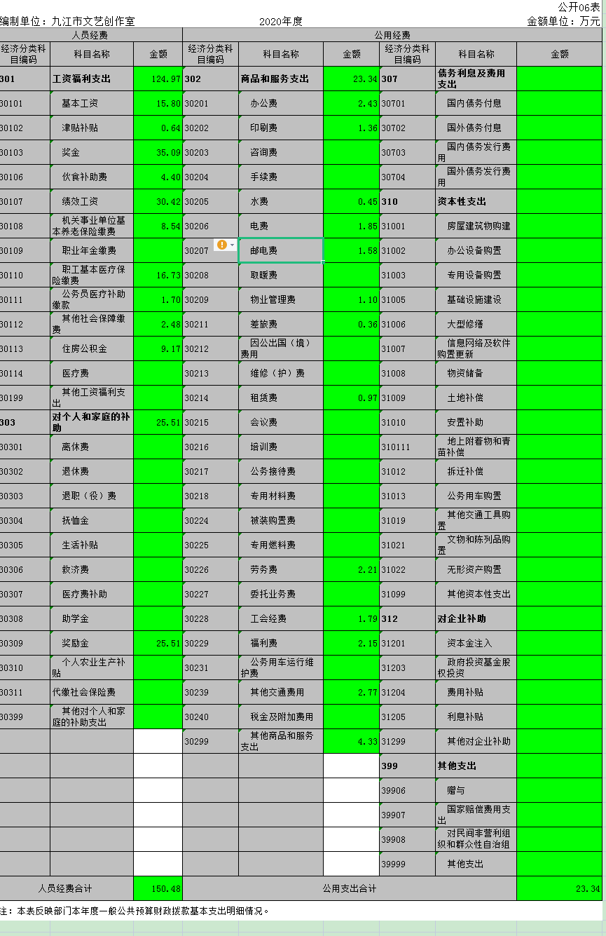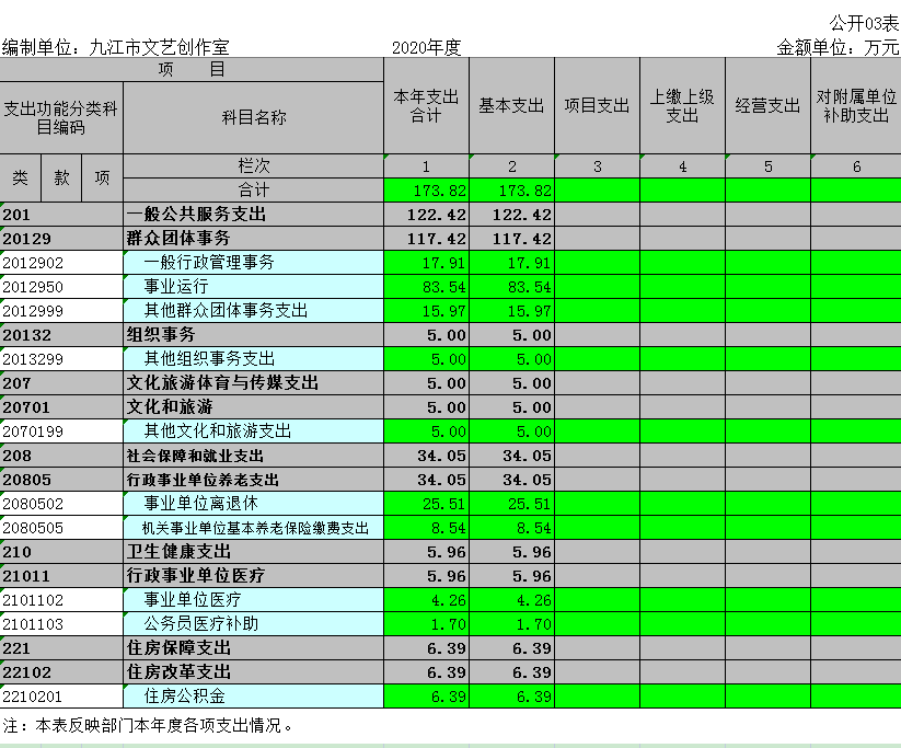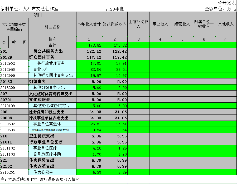 第三部分:九江市文学艺术院2020年度决算情况说明