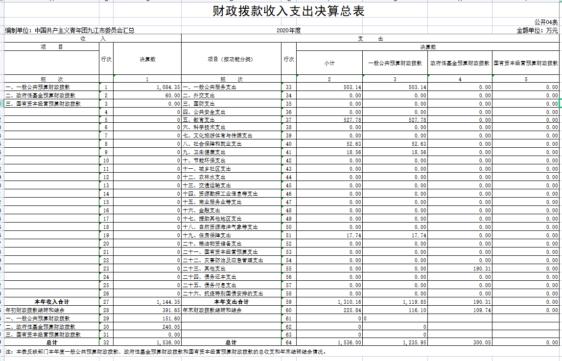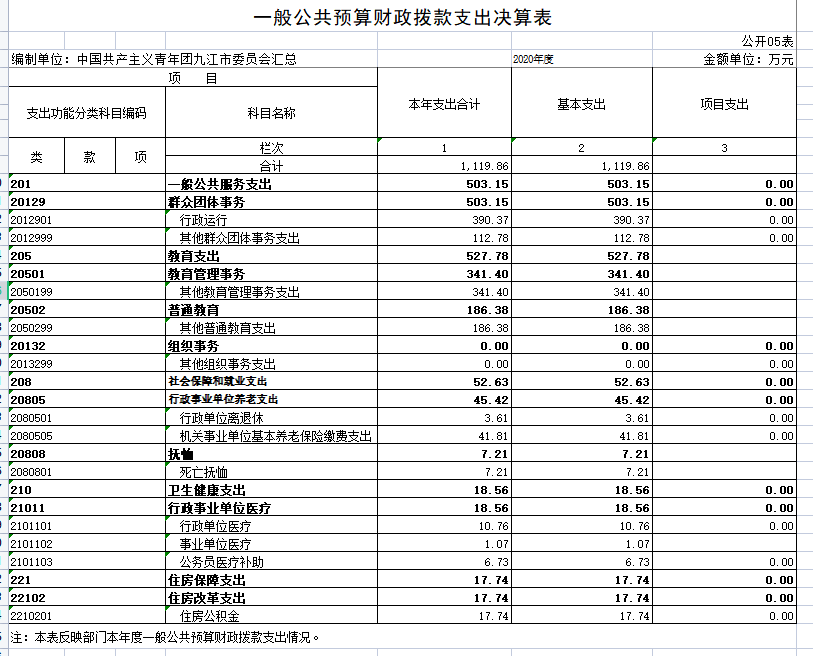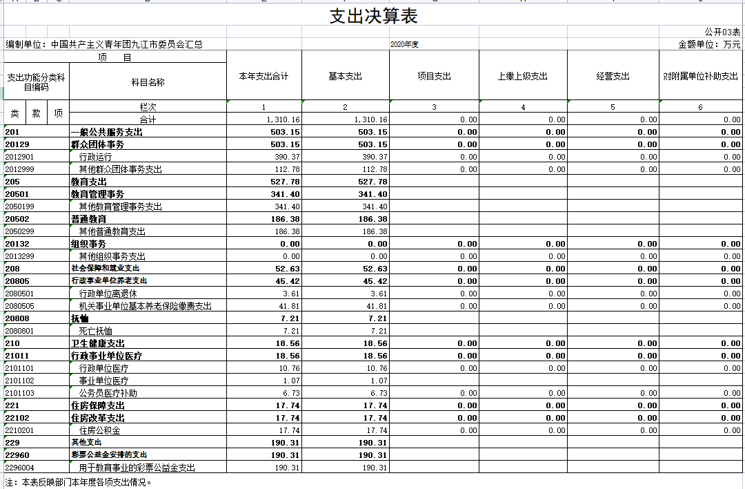 (一)一般公共服务支出年初预算数为487.90万元,调整预算数为503.14万元,决算数为503.14万元,完成年初预算的103.12%,主要原因是团市委机关年中增人增资经费增加。