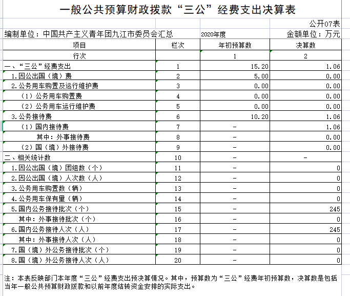 三、“三公”经费支出:指用一般公共预算财政拨款安排的因公出国(境)费、公务用车购置及运行维护费和公务接待费。其中,因公出国(境)费反映单位公务出国(境)的国际旅费、国外城市间交通费、住宿费、伙食费、培训费、公杂费等支出;公务用车购置及运行维护费反映单位公务用车车辆购置支出(含车辆购置税、牌照费),按规定保留的公务用车燃料费、维修费、过桥过路费、保险费、安全奖励费用等支出;公务接待费反映单位按规定开支的各类公务接待(含外宾接待)支出。