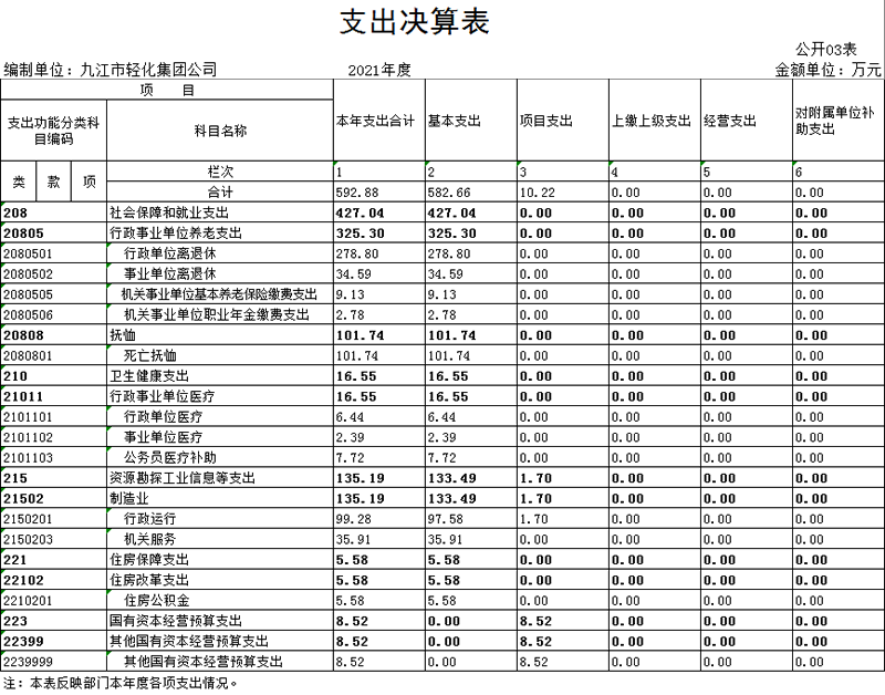本单位2021年度支出总计 592.88万元,其中本年支出合计 592.88万元,较2020年增加17.78万元,增长3.09%,主要原因是:2021年度追加了死亡抚恤金;年末结转和结余0万元,较2020年减少23.29万元,下降100%,主要原因是:2021年以支定收,年末不再有结转结余。