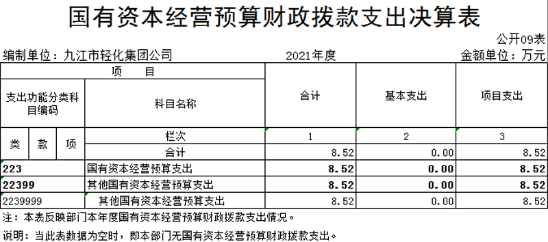 (五)国有资本经营预算支出年初预算数为8.52万元,决算数为8.82万元,完成年初预算的100%,主要原因是:和年初预算数持平。