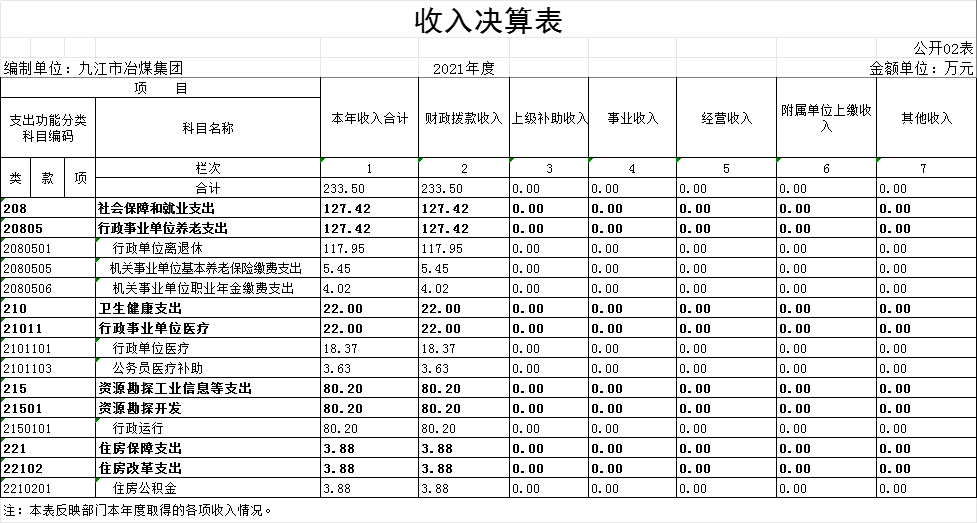 本单位2021年度收入总计233.5万元,其中年初结转和结余 0万元,较2020年减少16.4万元,下降7.07%;本年收入合计 233.5万元,较2020年减少16.4万元,下降7.07 %,主要原因是:人员经费及项目经费减少。