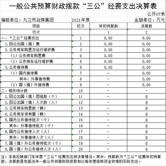 本单位2021年度一般公共预算财政拨款“三公”经费支出年初预算数为 0万元,决算数为 0万元,与上年结算数相同。决算数与年初预算数相同。其中: