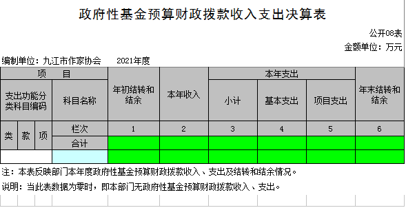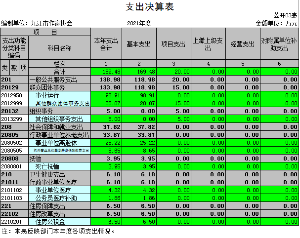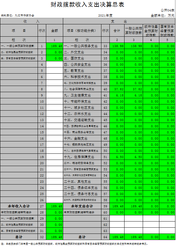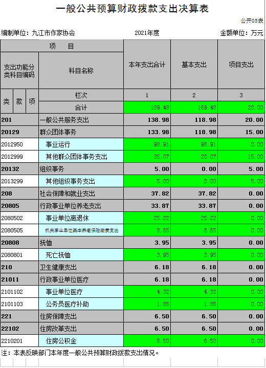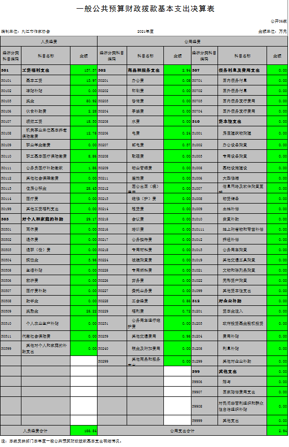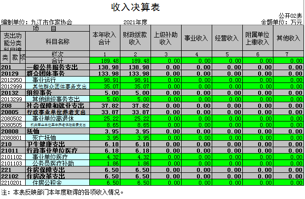 九江市作家协会2021年度决算