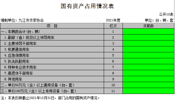 十、国有资产占用情况表