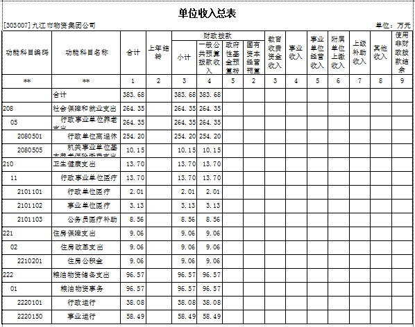 2023年九江市物资集团收入预算总额为383.68万元,较上年预算安排增加200.97万元;财政拨款收入383.68万元,较上年预算安排增加200.97万元,增加原因政府性奖金列入年初预算。
