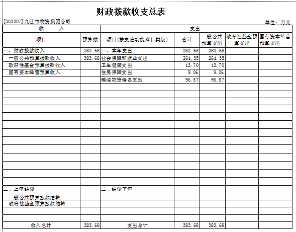 2023年九江市物资集团公司财政拨款支出预算总额为财政拨款支出预算总额383.68万元,较上年预算安排增加200.97万元,增加原因政府性奖金列入年初预算。