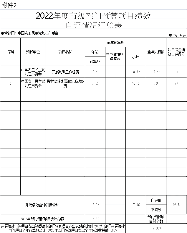 编制单位:中国农工民主党九江市委会 2022年度金额单位:万元