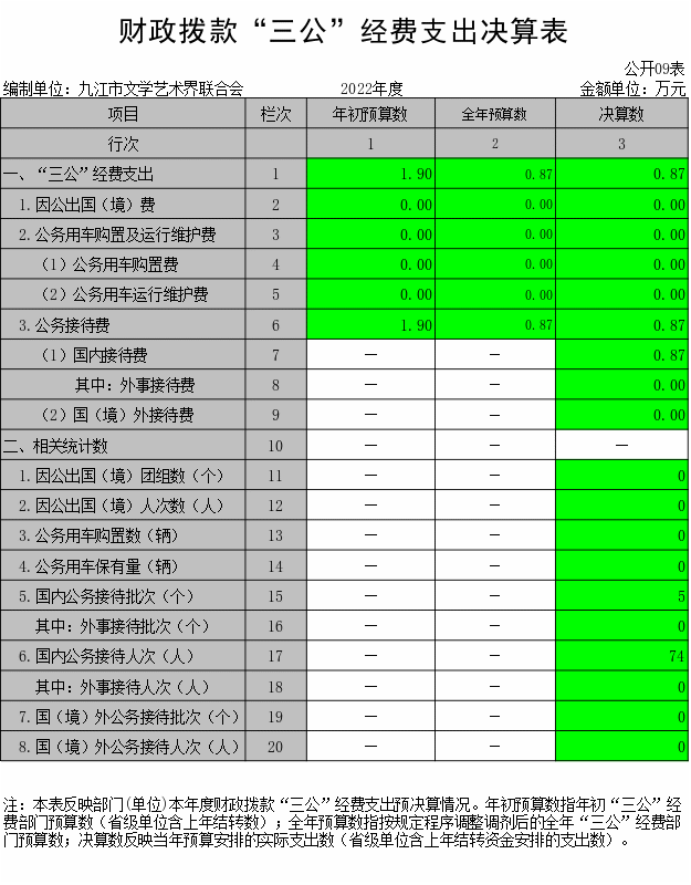 (二)公务接待费支出全年初预算数为0.87万元,决算数为0.87万元,完成全年预算的 100%,决算数较2021年增加了0.57万元,增长190%,主要原因是:根据单位的实际情况,本年度增加了外单位的公务出行活动次数。决算数较全年初预算数减少的主要原因是:本年度公务接待存在年中进行预算调整的情况,因此决算数与全年预算数金额一致。全年国内公务接待5批,累计接待74人次,其中外事接待0批,累计接待0人次,主要为:国内公务接待。