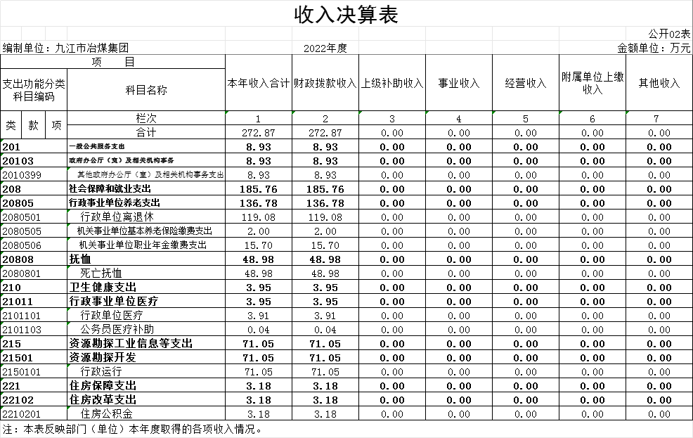 本单位2022年度收入总计272.87万元,其中年初结转和结余 0万元,和2021年持平;本年收入合计272.87万元,较2021年增加39.37万元,增长14.4%;主要原因是:增加了政府性奖励金和死亡抚恤金。