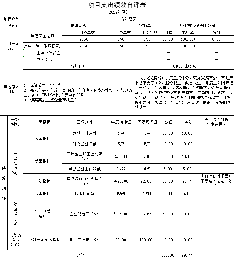 现将2022年度“专项经费”《项目支出绩效自评表》进行公开。