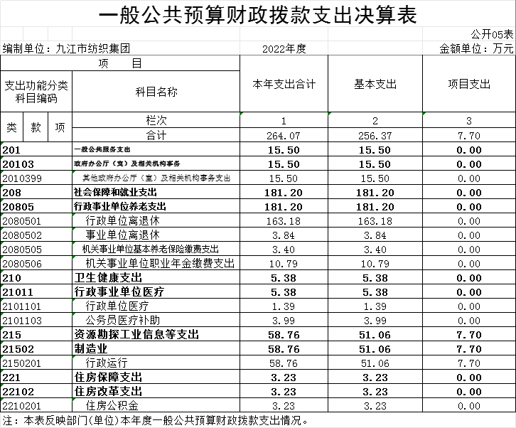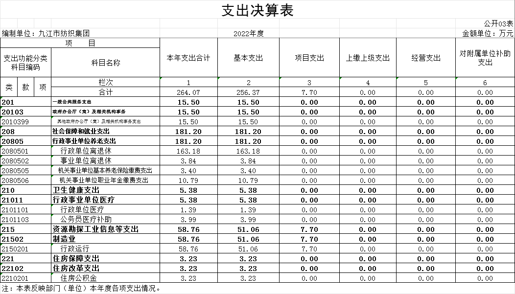 本单位2022年度支出总计 264.07万元,其中本年支出合计 264.07万元,较2021年减少8.61万元,下降3.2%;主要原因是:在职人员和退休人员有所减少;年末结转和结余0万元,和2021年持平,主要原因是:以支定收,年末不再有结转结余。