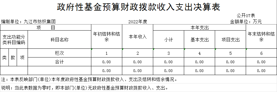 九江市纺织集团公司属市国资委下属三级预算单位,2002年政府机构改革,整体由行政单位转体为集团公司。机关在编在岗人员、离退休人员其经费继续由市财政负担。现阶段的主要职能职责为: