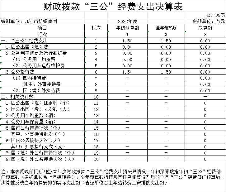 (三)公务用车购置及运行维护费支出0万元,其中公务用车购置全年预算数为0万元,决算数为0万元,完成全年预算的0%,决算数与 2021年持平,主要原因是已实行车改不再保留公车,全年购置公务用车 0辆。决算数和全年预算数一致的主要原因是:已实行车改不再保留公车;公务用车运行维护费支出全年预算数为0 万元,决算数为0万元,完成全年预算的0%,决算数与 2021年持平,主要原因是已实行车改不再保留公车,年末公务用车保有0辆。决算数和全年预算数一致的主要原因是:已实行车改不再保留公车。
