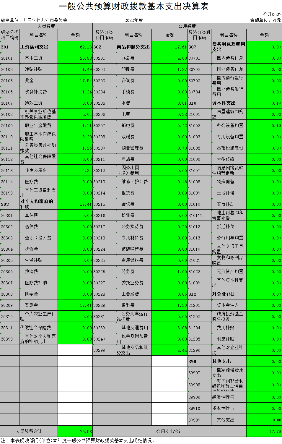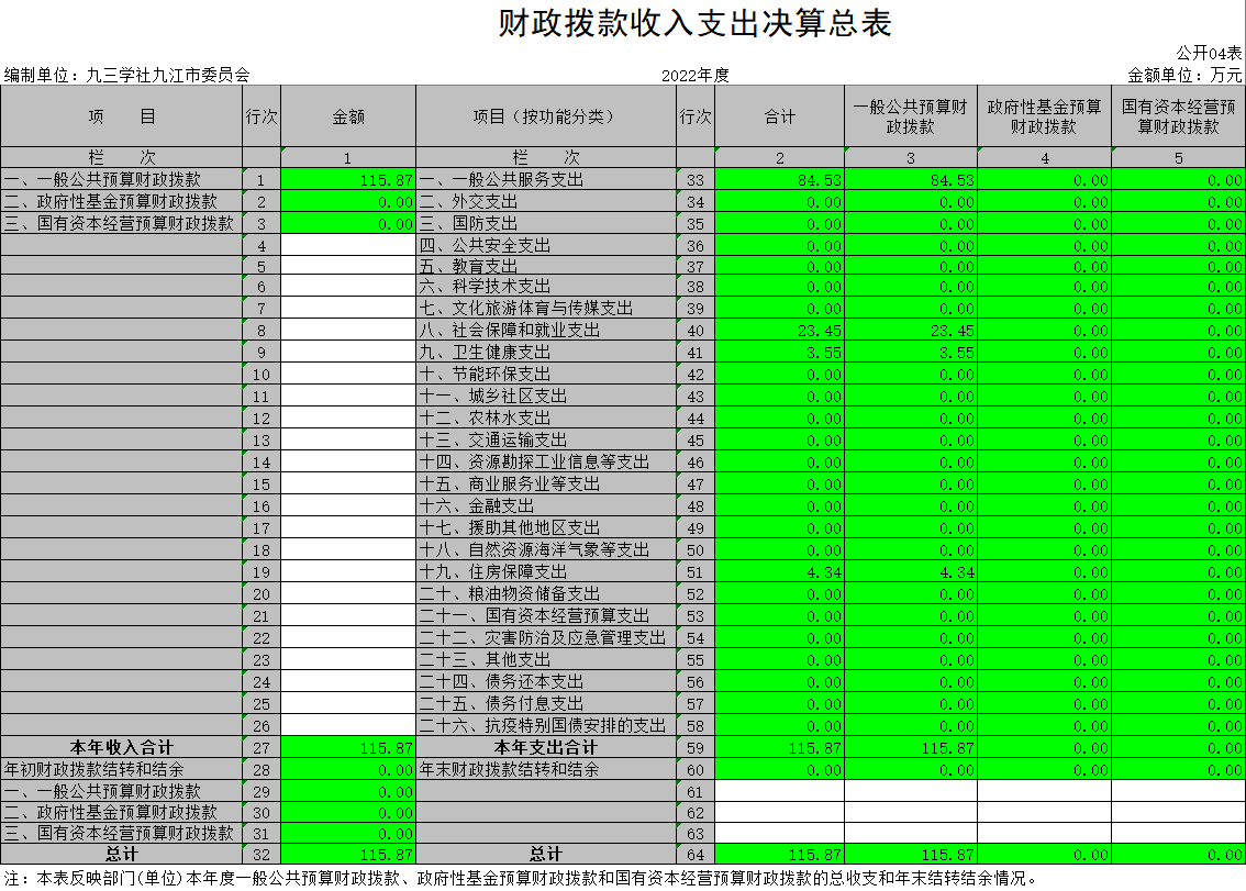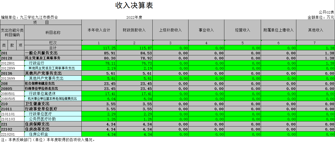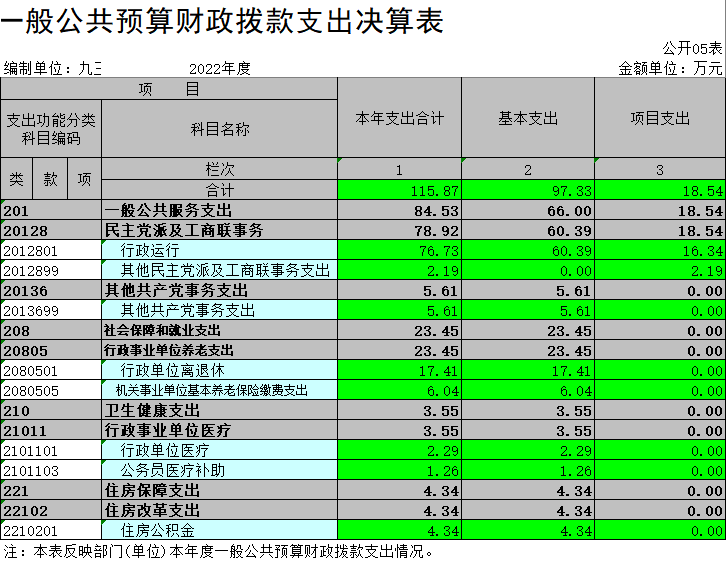 九三学社九江市委员会2022年度部门决算