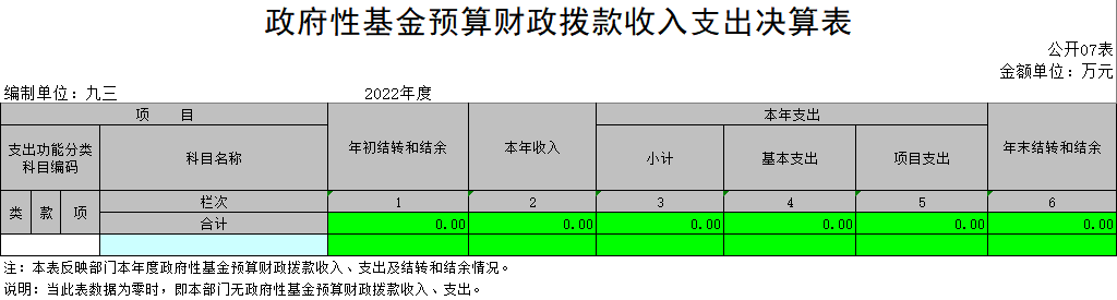 七、政府性基金预算财政拨款收入支出决算表