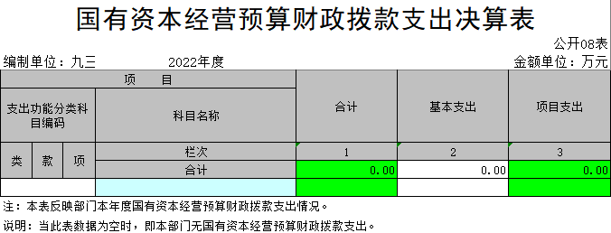 八、国有资本经营预算财政拨款支出决算表