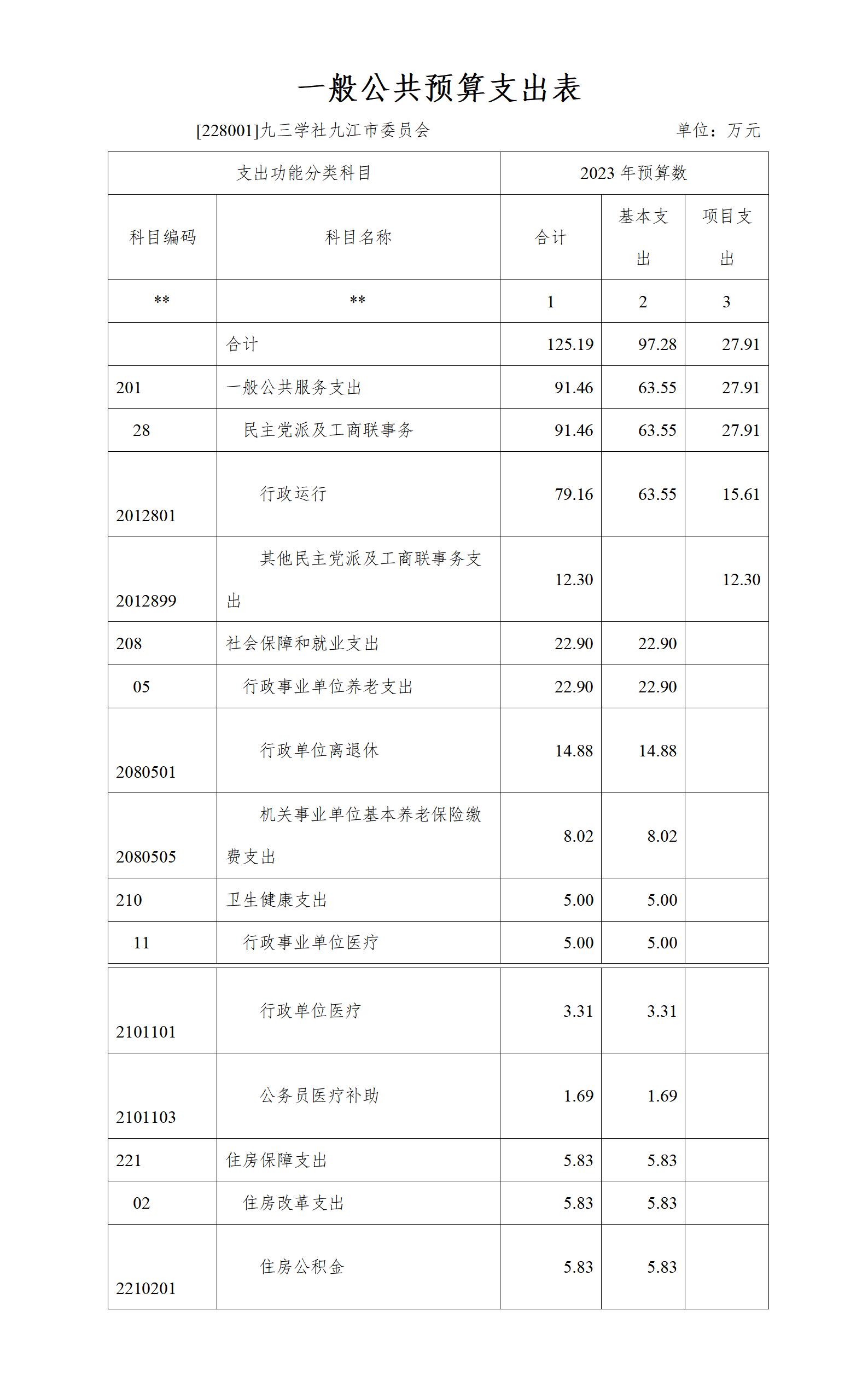 2023年九三学社九江市委会支出预算总额为支出预算总额为125.19万元,较上年预算安排减少增加37.29万元;其中: