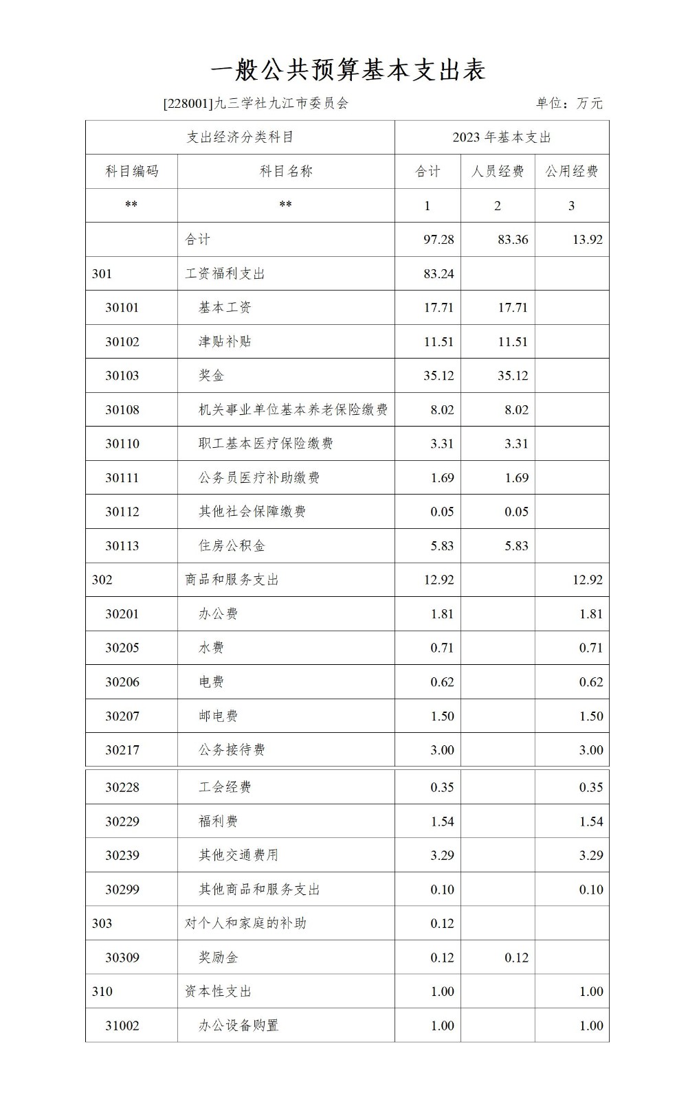 第二部分 九三学社九江市委会2023年机关预算表