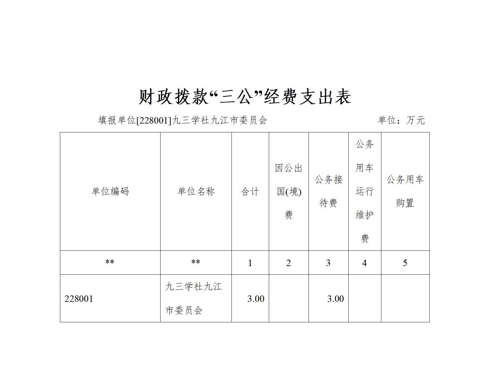 2023年九三学社九江市委会"三公"经费财政拨款安排 3.0 万元,其中: