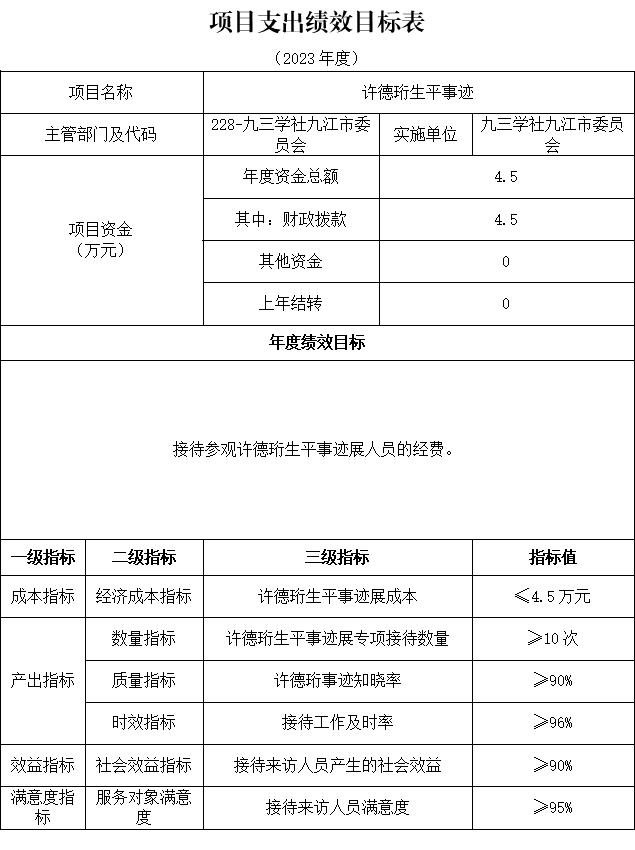 1)项目概述:许德珩生平事迹展4.5万元。主要是接待参观许德珩生平事迹展人员的经费。