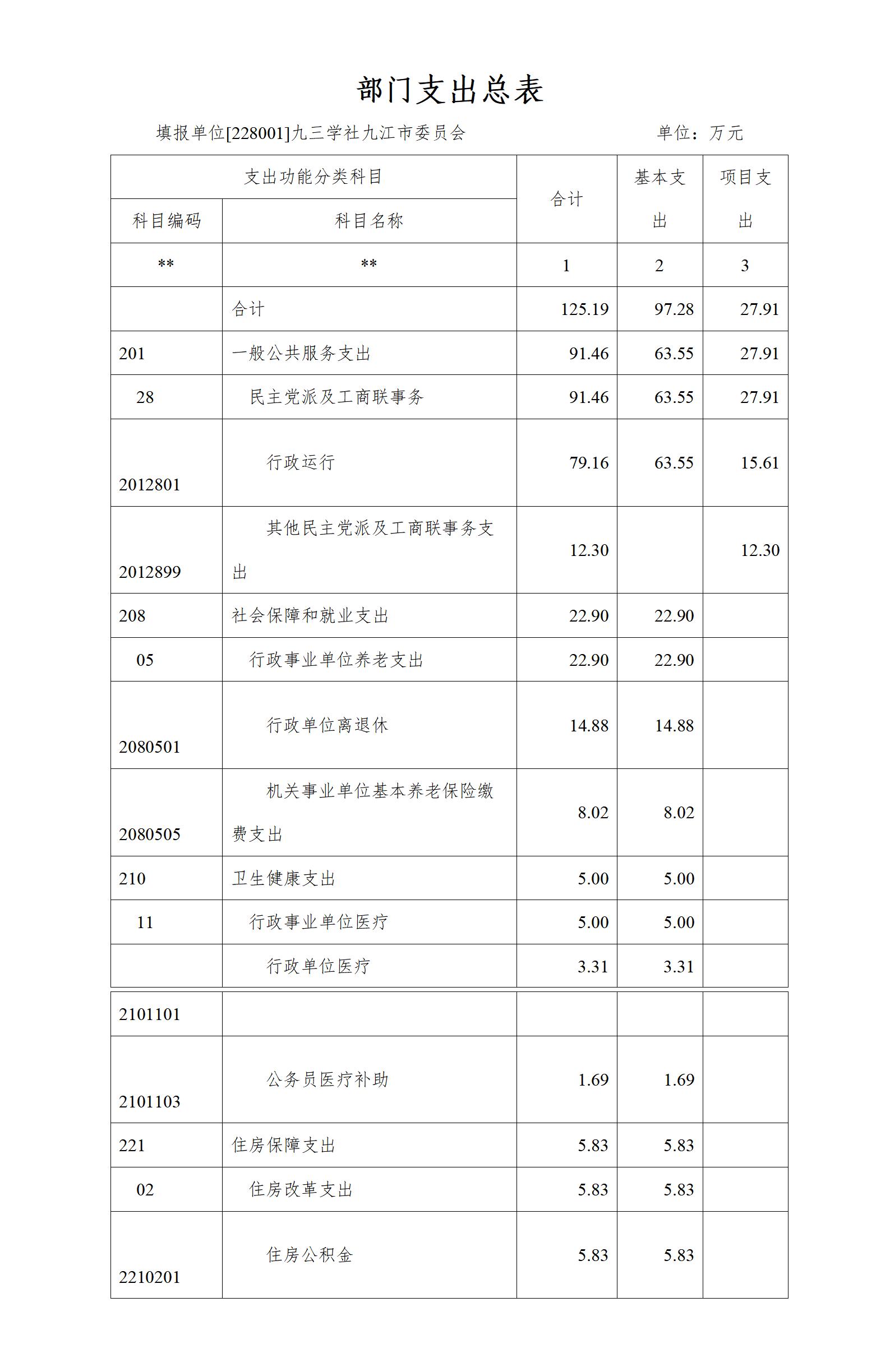 第二部分九三学社九江市委会2023年部门预算表