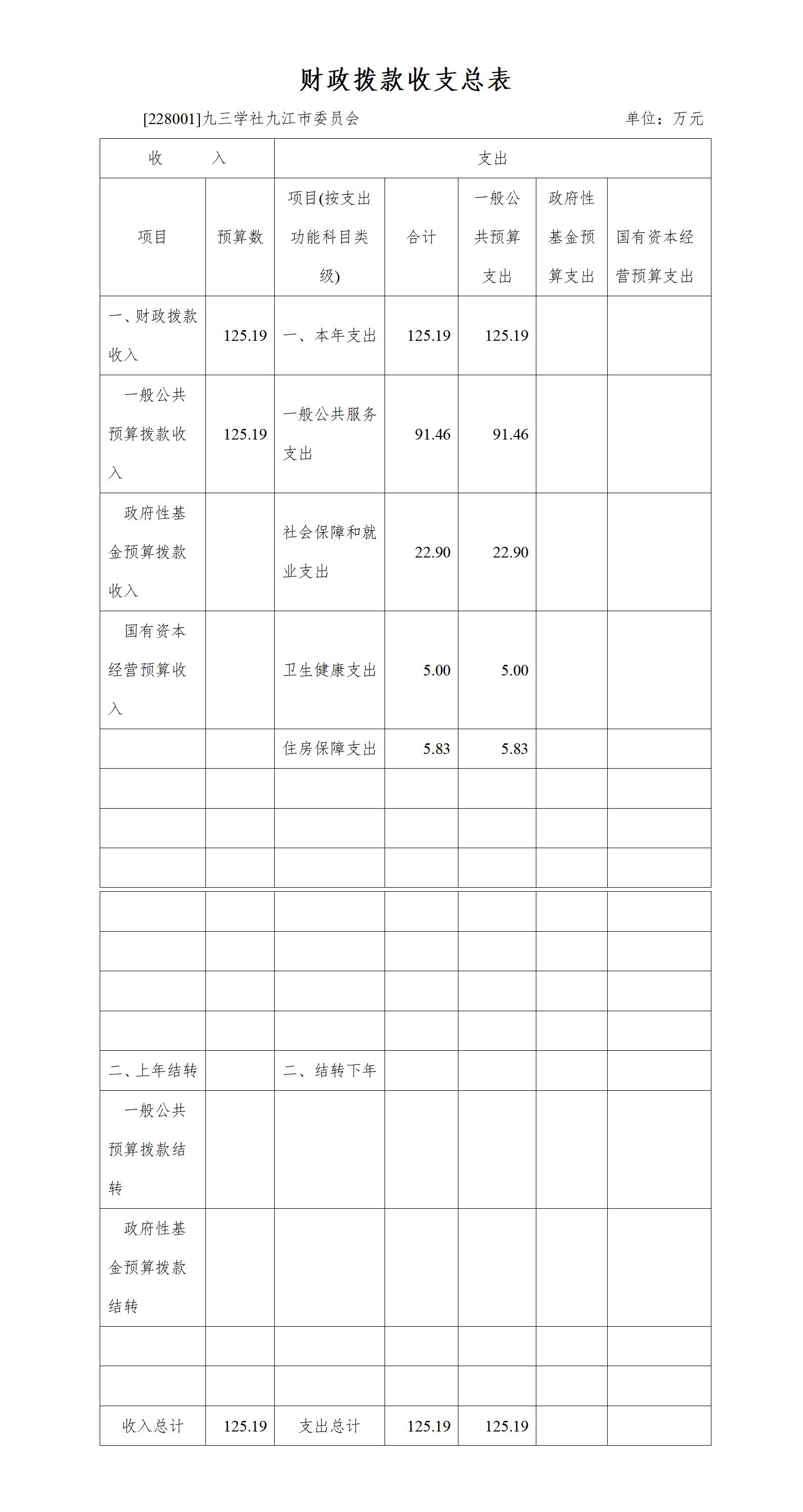 2023年九三学社九江市委会财政拨款支出预算总额为财政拨款支出预算总额125.19万元,较上年预算安排增加37.29万元;