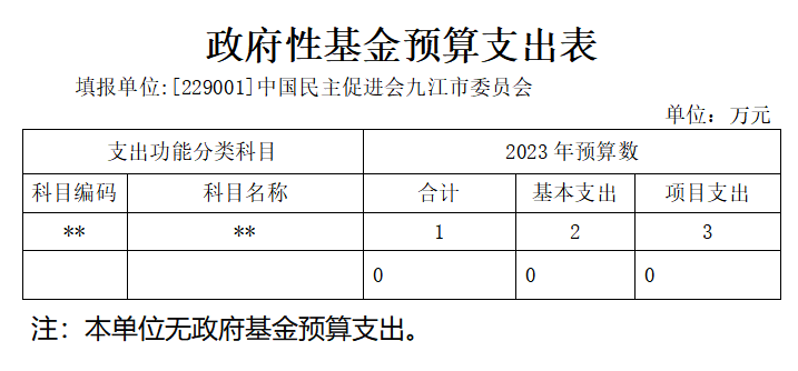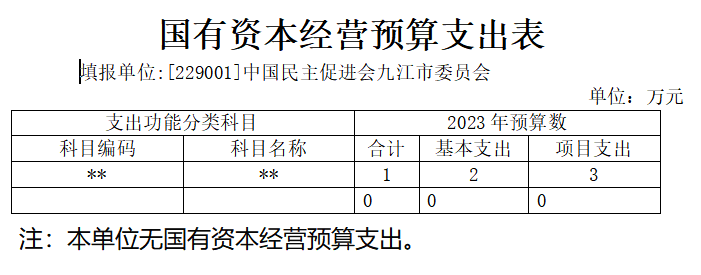 2023民进九江市委会国有资本经营支出预算为0万元。