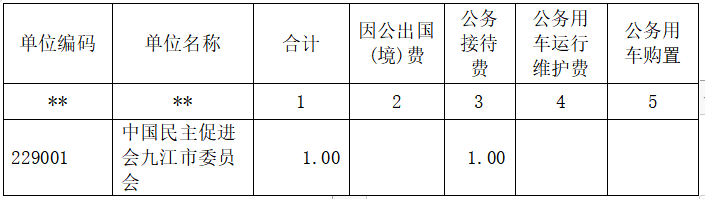 2023年民进九江市委会"三公"经费财政拨款安排 1.0万元,其中:
