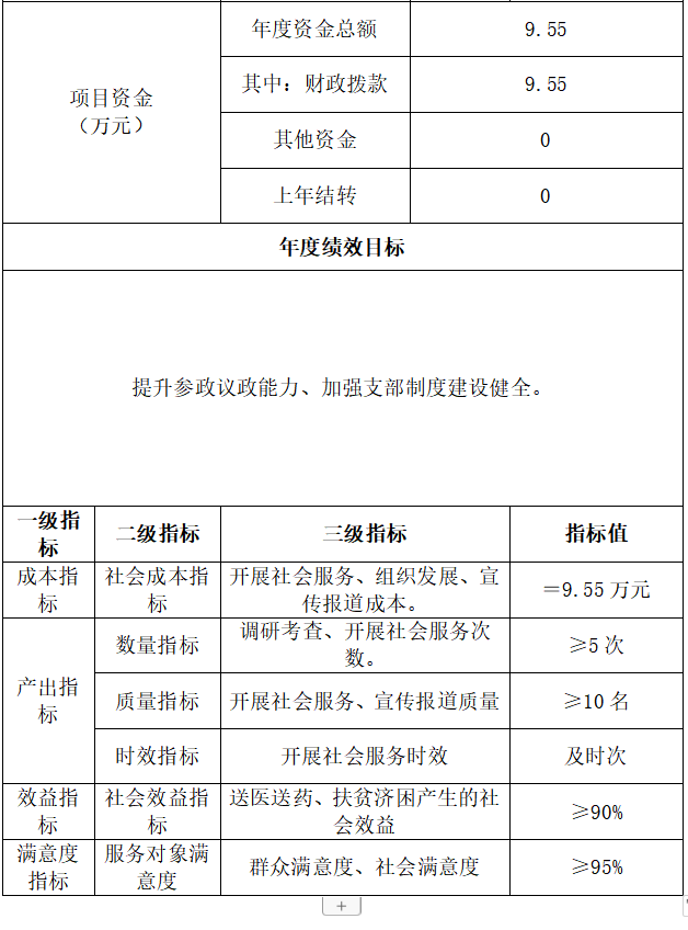 1) 项目概述:开展党派工作9.55万元。主要是参政议政、民主监督,参加中国共产党领导的政治协商是民主党派的三大工作职能,为保障实现三大职能追加的工作经费.
