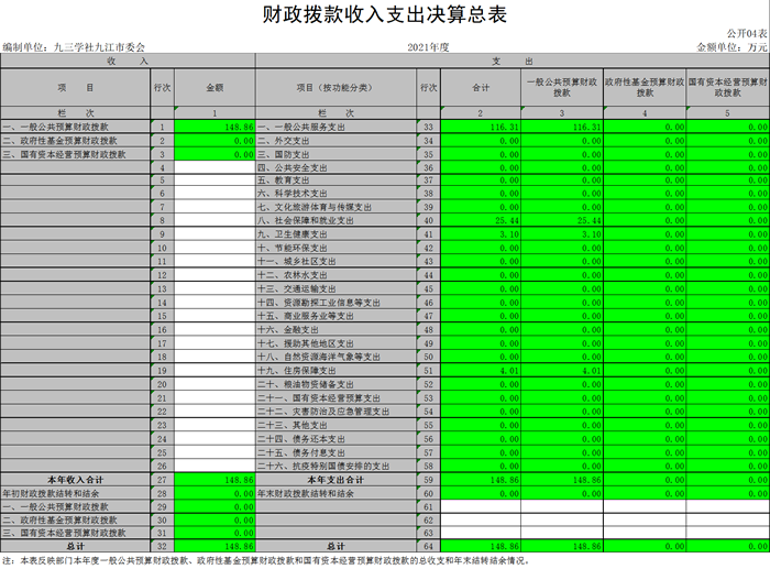 第二部分 2021年度部门决算表