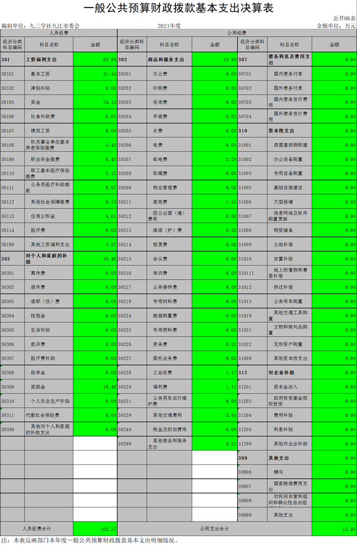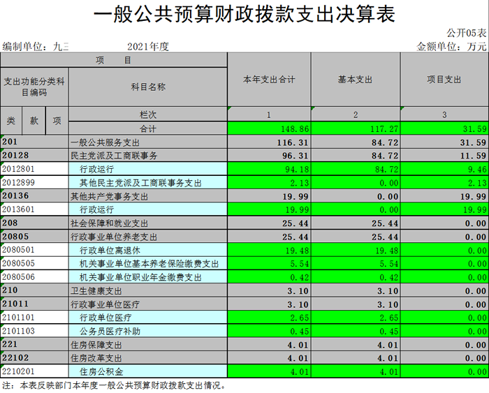 九三学社九江市委员会2021年度部门决算