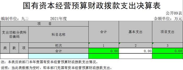 九、国有资本经营预算财政拨款支出决算表